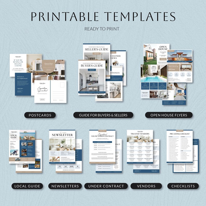 Modern Real Estate Marketing Template Bundle, Real Estate Agent Social Media Template, Minimal Branding Design, Realtor Branding Logo, Digital Download, DIY Marketing Materials